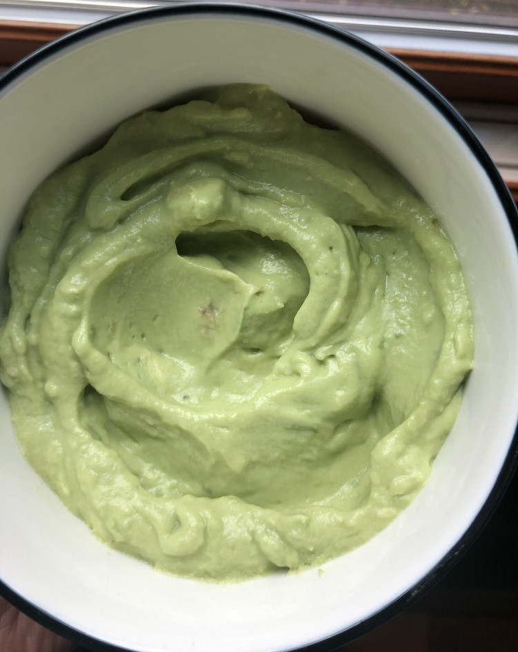 - Place all ingredients in a bowl and immersion blend OR throw together in a food processor and blend on high (if your avocados are not very ripe).