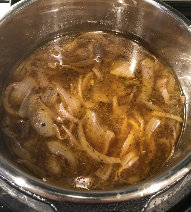 For the French Onion Soup, the whole thing can be done on the stove as well, keeping in mind letting it simmer for half an hour in lieu of pressure cooking!