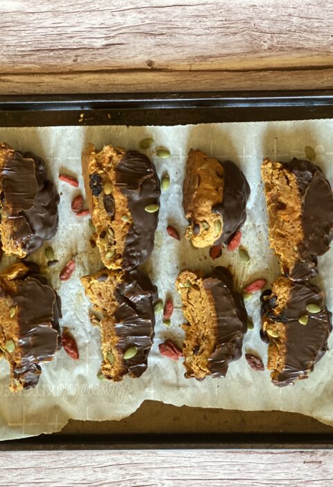 - Your butternut squash is now ready for the oven! Place the 4 pieces face up in a baking tray and drizzle some olive oil on them and bake them off for 50 minutes.