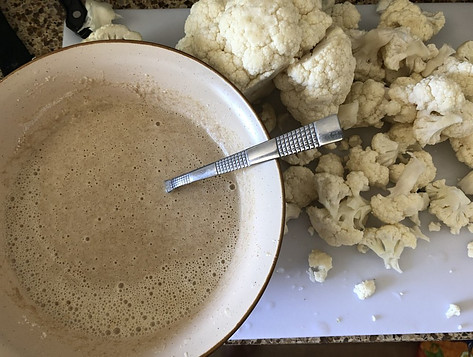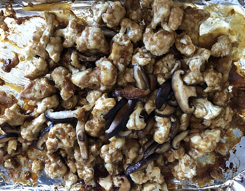 - Once sauce is made, pour it over the roasted cauliflower and coat every piece.