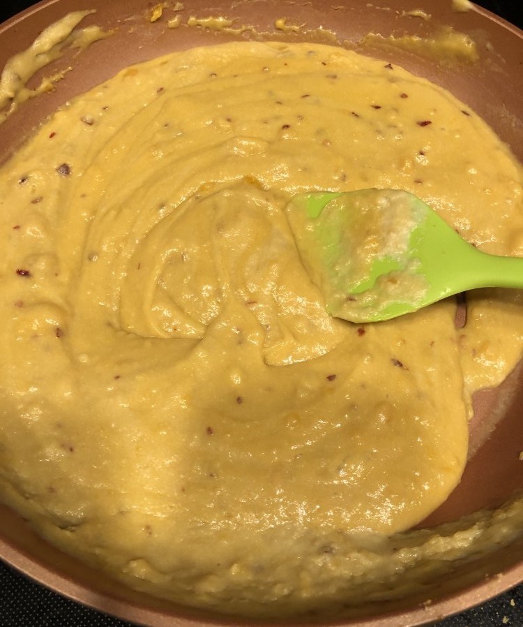- Add blocks of Daiya cheese and nutritional yeast. Stir continuously for 5 minutes, until all cheese has melted.