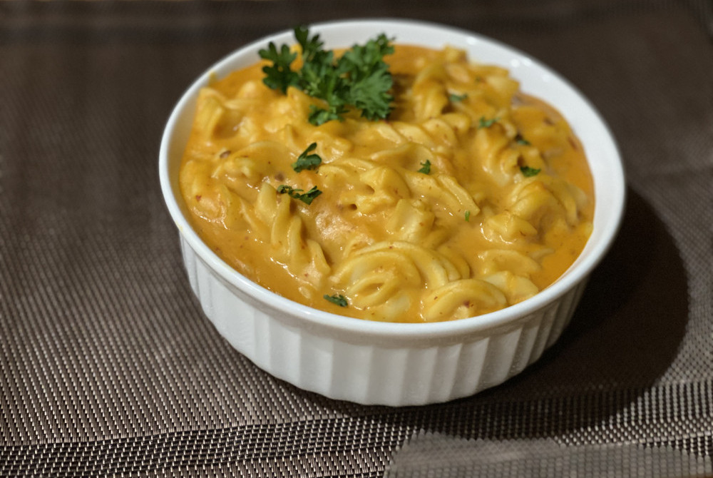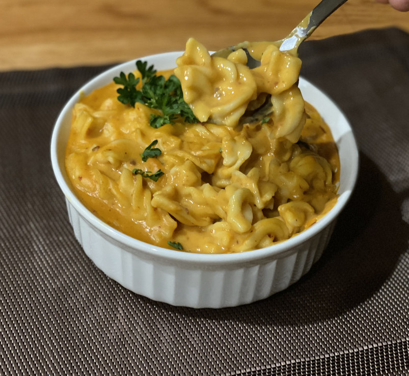 This recipe combines everything you love about traditional mac and cheese (think: super rich, creamy, and savory) with a hint of sweetness from the sweet potato, and a spice kick from chipotle peppers/adobo sauce. There are so many complimentary flavors that keep the taste exciting throughout the entire bowl. The flavor profile develops as you layer in the roasted caramelized sweet potato, nutritional yeast, and chipotle peppers. The sweetness in the sweet potato is balanced out by the cheesiness in the nutritional yeast. And that caramelized and cheesy flavor is further developed by layering on the spice profile.