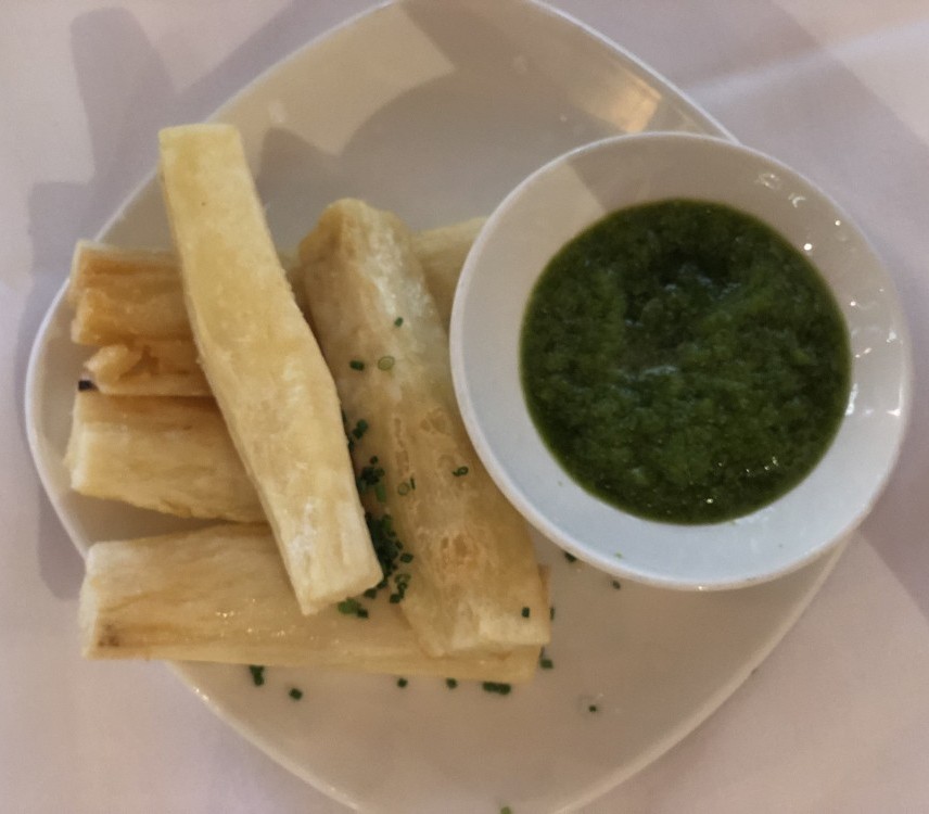 We ordered everything family style so that we could get a taste of everything. For appetizers, we got yuca frita con salsa Verde, tres salsas (peanut, passion fruit, and jalapeño) con pan, and a trio de papas y salsas peruanas (ocopa, huancaína, y ricoto). I became especially obsessed with the huancaína, which has a delicious base of aji amarillo chiles and a queso fresco, whisked together to achieve a thick and smooth perfect result.
